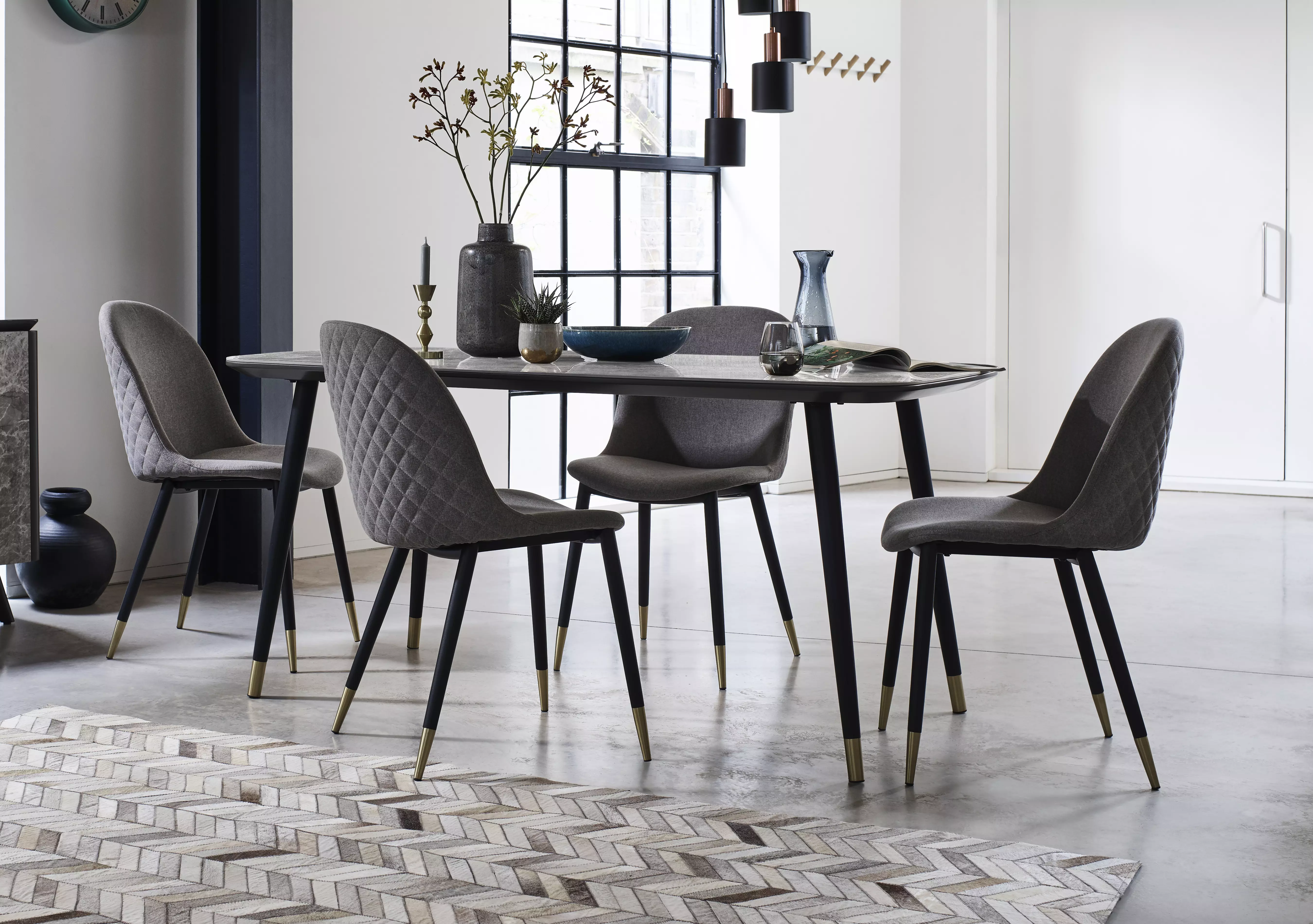 Arturo Compact Round Dining Table Set With Grey Marble Top 4 Pembroke Charcoal Dining Chairs Marble Stone Dining Sets Furniture World