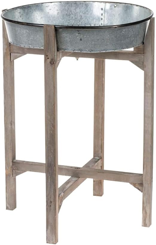 Matches21 Tavolino Rustico Con Struttura In Legno E Vaschetta In Zinco Rotondo O 43 X 58 Cm Amazon It Casa E Cucina