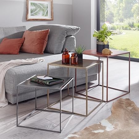 Set Di 3 Tavolini Design Matti Tavolino Da Salotto Tavolino In Metallo Design Industriale Tavolino Angolare Rame Ottone Zinco 50 45 35 X44 40 36 X44 40 36 Cm Kufer Ottone Zinco Amazon It Casa E Cucina