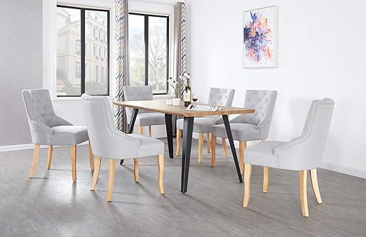 Kensington Chaise Capitonnee En Tissu Gris Pieds En Bois Design Classique Salle A Manger Salon Ou Chambre Achat Prix Fnac