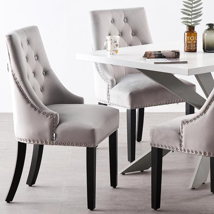 Windsor Lot De 2 Chaises Capitonnees Grises En Velours Style Classique Design Pieds En Bois Salle A Manger Salon Ou Coif Achat Vente Chaise Cdiscount
