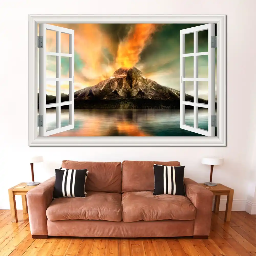 Papel Tapiz 3d De Una Pieza Para Ventana Pegatinas De Pared De Paisaje Naturales Increible Volcan De Fuego Vinilo Arte Para Dormitorio Decoracion Del Hogar Home Decor Landscape Wall Stickers3d Window Aliexpress