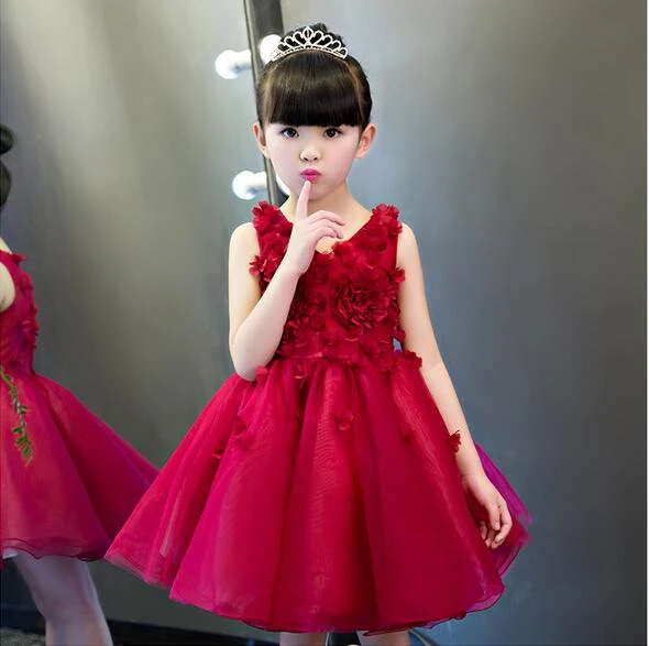 Rode 3D Bloem Prinses Meisje Jurk Doop Rose Party Bruiloft Verjaardag Gown kids tutu jurk voor meisjes jurken kleding Zomer|princess girl dress|tutu dresses for girlskids tutu dresses - AliExpress