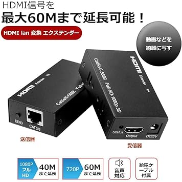 Amazon | HDMI エクステンダー 延長機器 HDMI to RJ45 LAN 変換アダプター HDCP 4K 1080P 対応 ディスプレイ CAT5E CAT6 LANケーブル 60Mまで 延長 送信受信セット ブラック | Yukidoke | AVアクセサリ