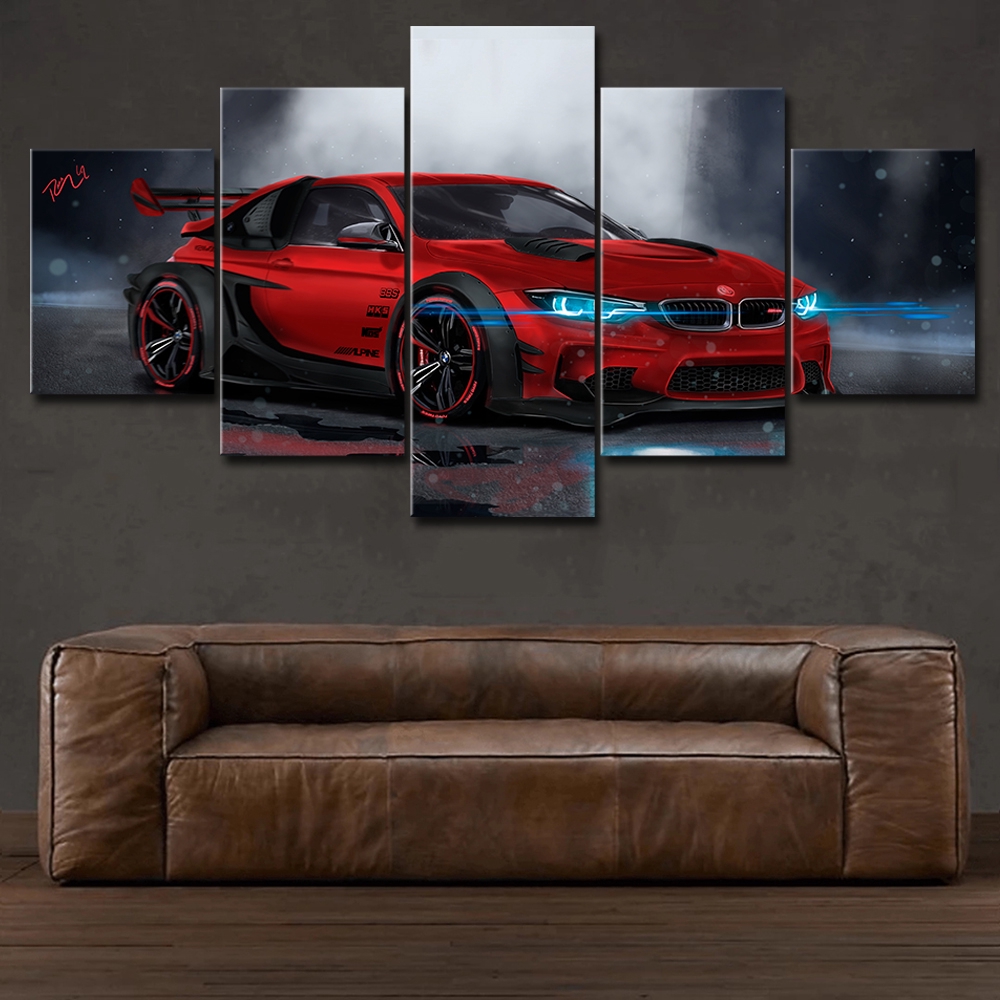 New Modular Printed Painting Canvas Home Decoration 5 Panel Cool Car Bc Aci